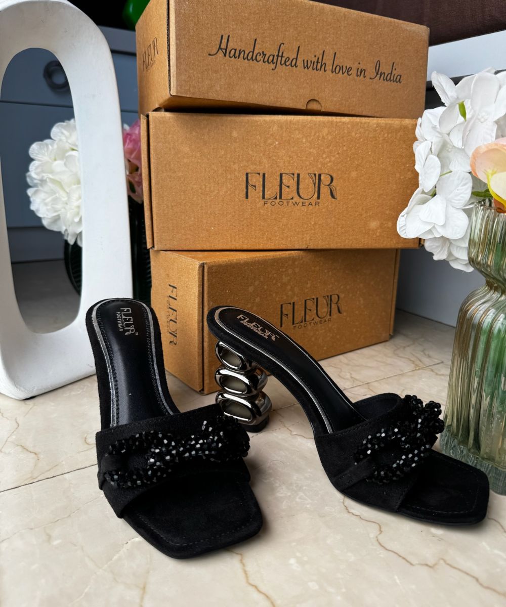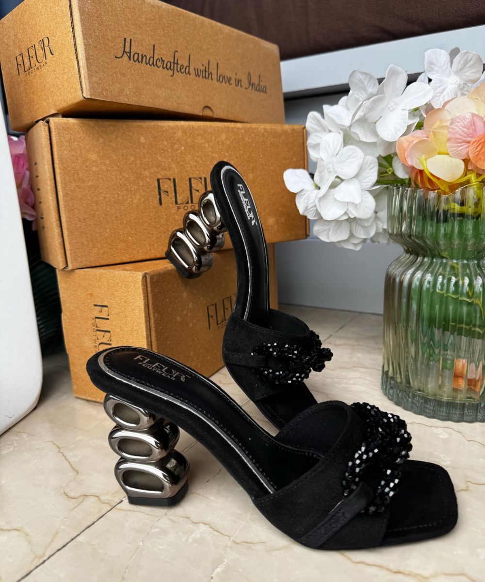 Topaz is where modern glamour meets confidence. The deep black finish paired with its dazzling design makes it the ultimate statement heel — perfect for nights that call for a touch of drama and endless allure.